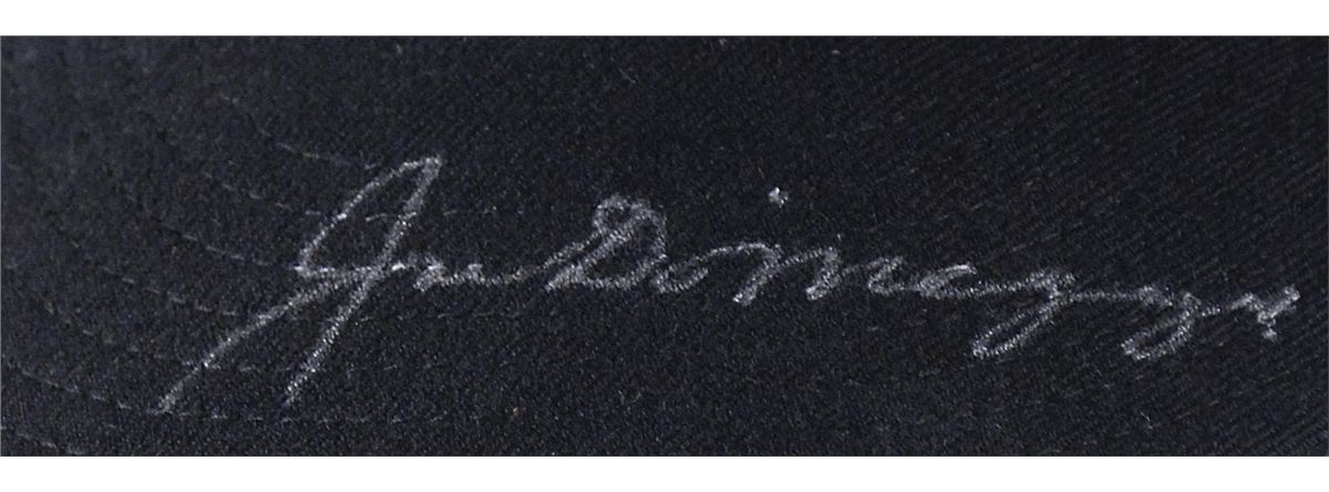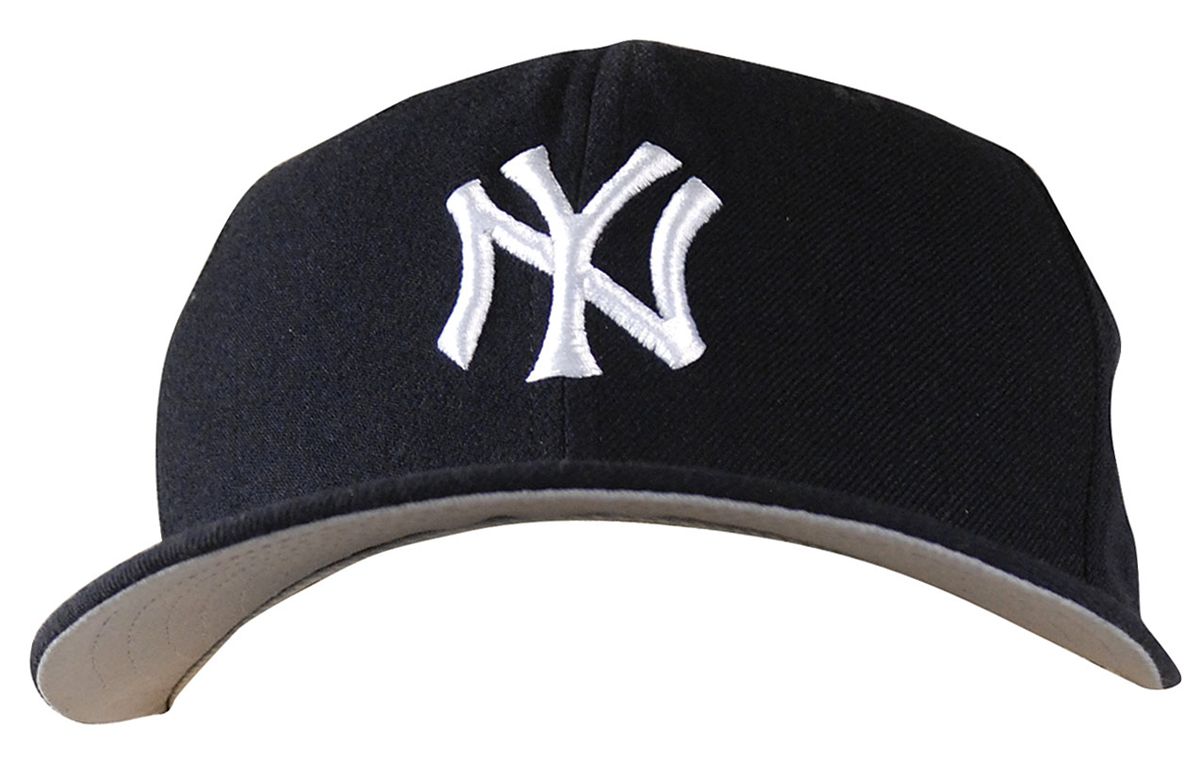 Replica New York Yankees baseball hat, signed on the brim in silver ink. In fine condition.