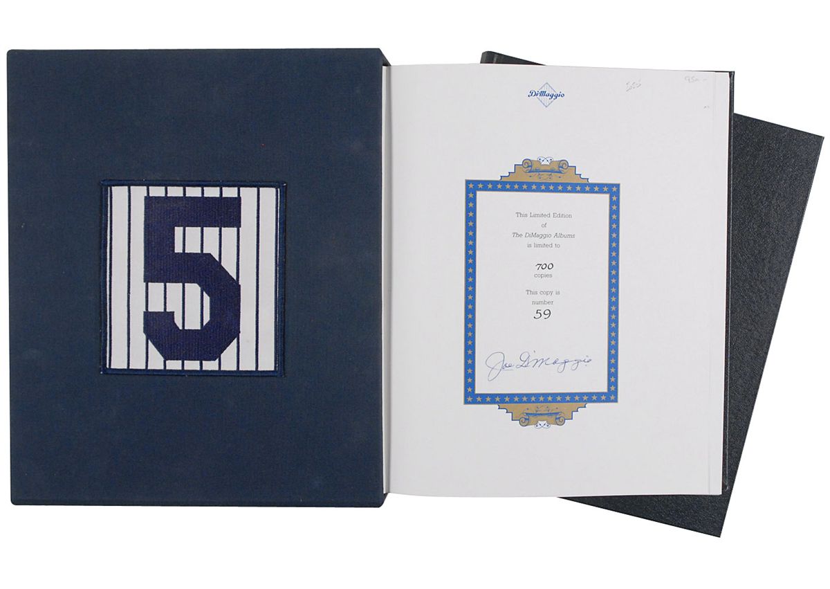 Signed book: The DiMaggio Albums, Volumes I & II. First edition, limited issue, numbered 59/700. NY: G. P. Putnam’s Sons, 1989. Two hardcover volumes in slipcase, 9.25 x 11.25. Signed in blue ballpoint on the colophon of Volume I. In fine condition.