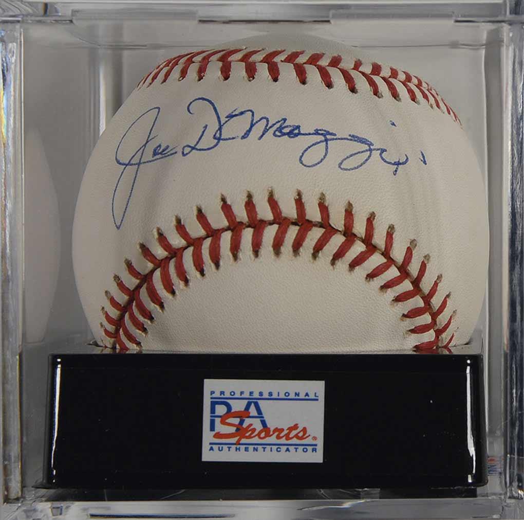 Official Rawlings American League baseball signed in blue ballpoint on the sweet spot. Accompanied by a full letter of grading and authenticity from PSA/DNA, grading the autograph a “9,” the ball a “9,” and the overall grade a “9.” In fine condition.