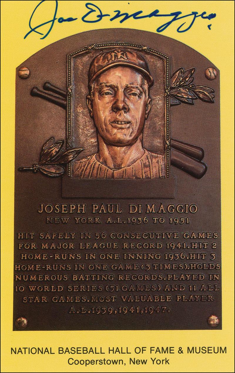 Gold Hall of Fame plaque card signed across the top in blue felt tip. In fine condition.