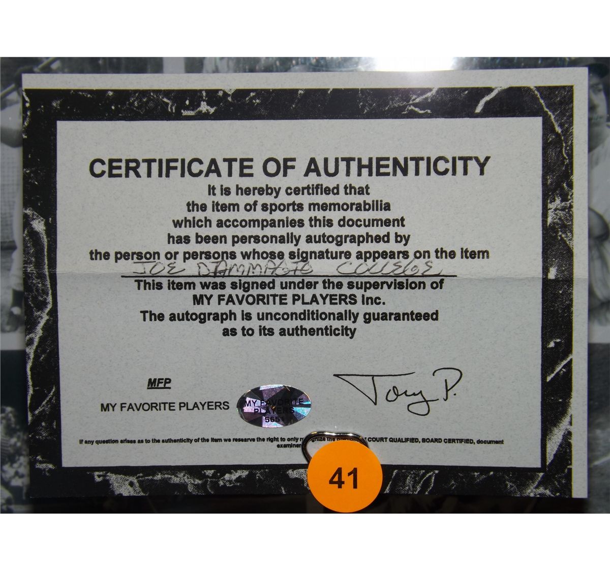 Joe Dimaggio Autographed Collage. 8x10 Photo Collage. Appraised or estimated retail value $695. COA by My Favorite Players. All Sales Final. Please see terms and conditions of auction.