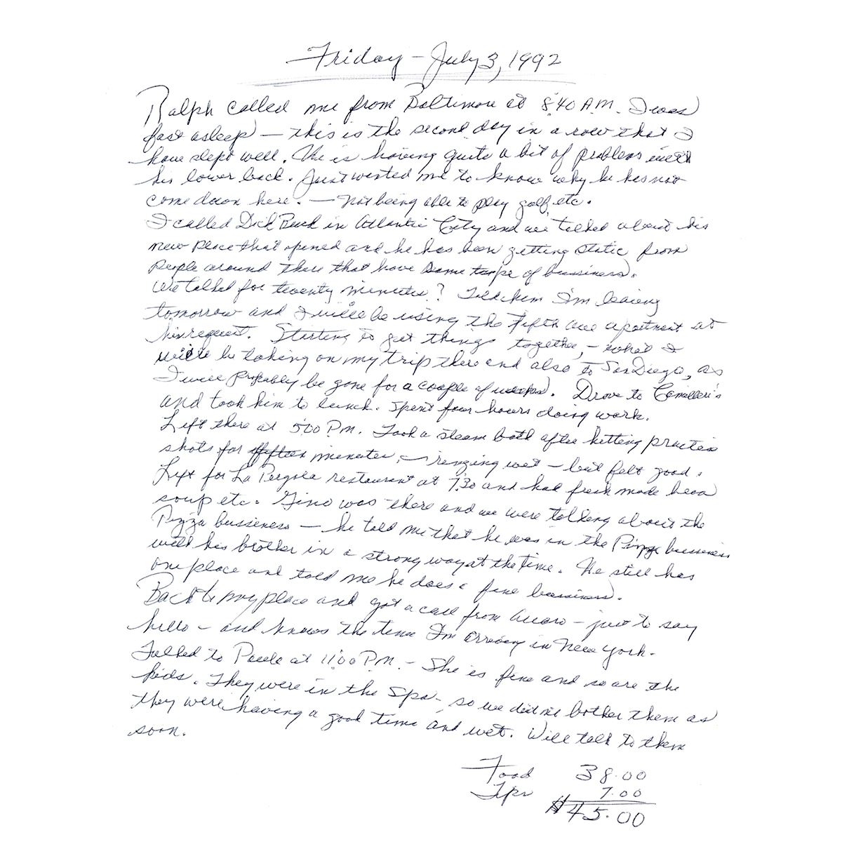 Joe DiMaggio Diaries Page - Volume 23, 1992, Jul-Sept