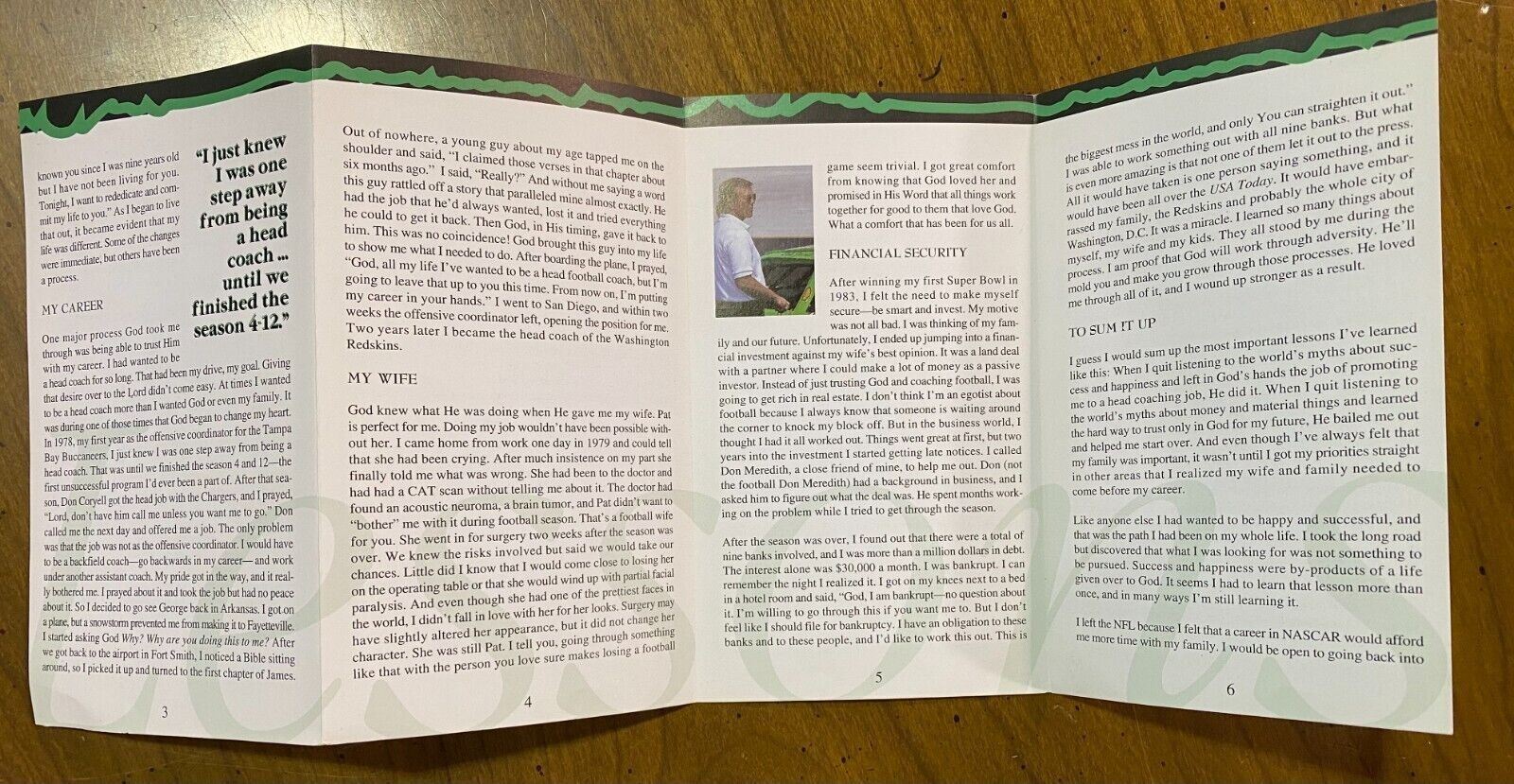Joe Gibbs NFL Signed Pamphlet