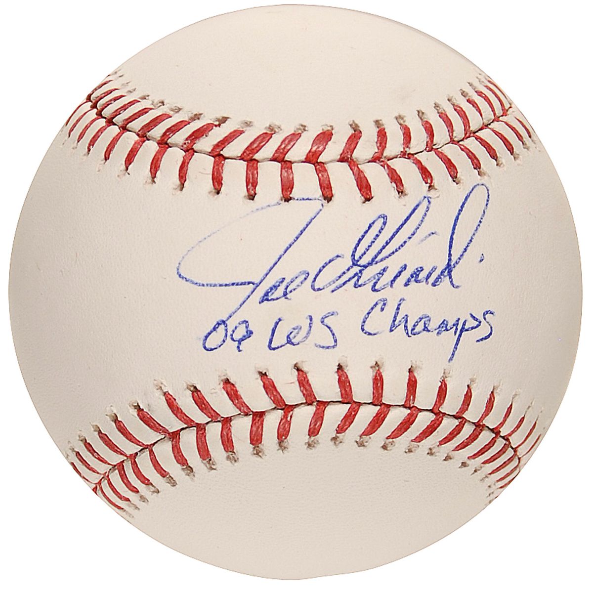 Official Rawlings baseball signed in blue ballpoint on the sweet spot, “Joe Girardi, 09 WS Champs.” In very fine condition.