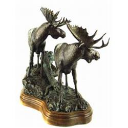 Joe Halko (b.1940) (Montana) Bronze Sculpture. Pair of Moose. #10/18. 15" Tall x 20" Long. signature inscribed. Est $3,000 - $3,500.