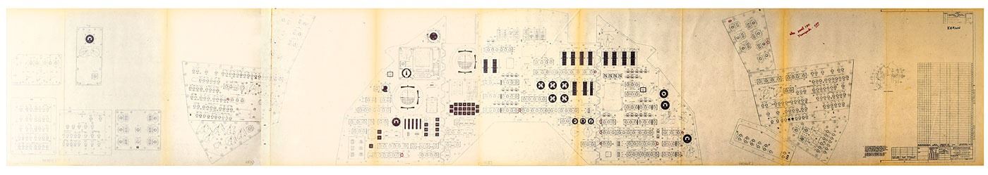 An extensive multi-plate schematic, approximately 78.75 x 11, for the 2TV-1 control/display panel, identified as “Test and Checkout Reference Designators, Command Module 98, V36–976017.”