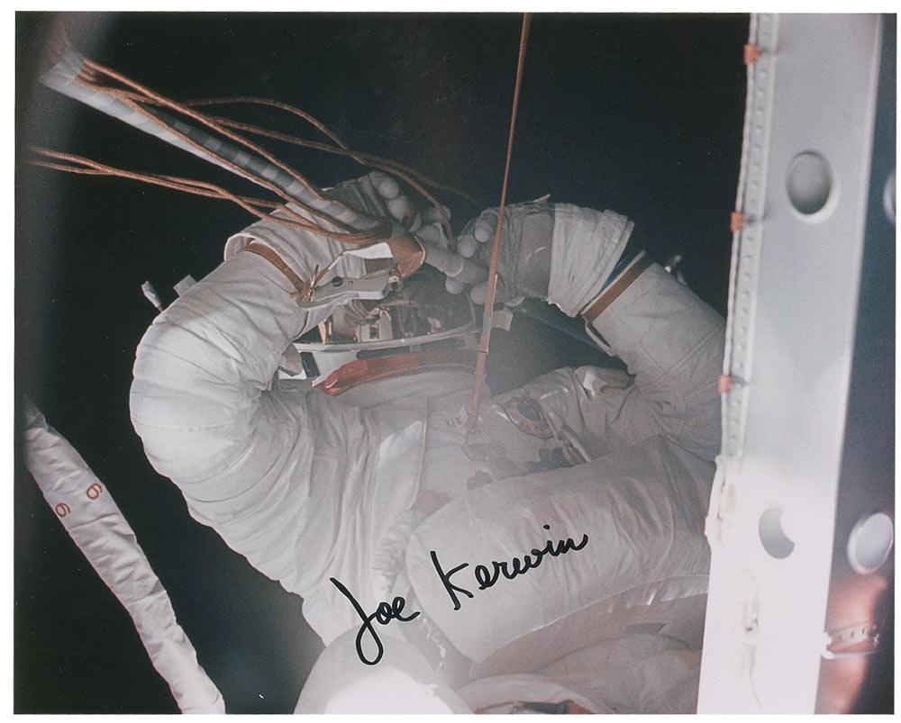 Color satin-finish 10 x 8 photo of Kerwin in space, signed in black felt tip. In fine condition.