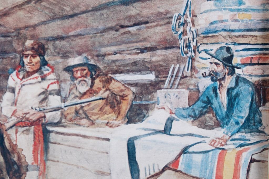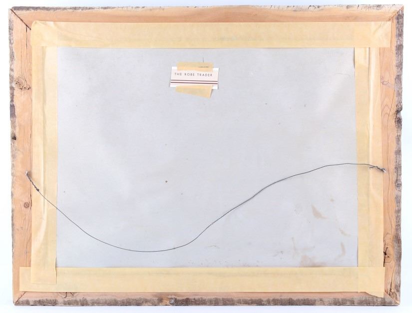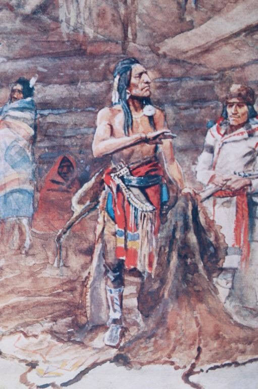 For your consideration is this wonderful driftwood framed print, "Joe Kipp's Trading Post". From the Buffalo Bill Center of the West's website: "Early in his career as a painter, Charles Russell (1864-1926) enjoyed every possible chance to depict a variety of western types. Visits to Joe Kipp's Trading Post in Browning, Montana, on the Blackfeet Reservation provided him with the opportunity to portray a number of western characters in a typical frontier setting. Joe Kipp's Trading Post , painted in 1898, is housed in the Whitney Gallery of Western Art." The print and frame are in good condition. The print measures about 18" x 25"; framed: 24" x 31.5".