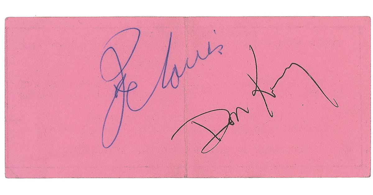 Ballpoint signature, “Joe Louis,” and an ink signature, “Don King,” on the reverse of a pink 5.25 x 2.25 ticket for the United States Boxing Tournament of Champions on March 27, 1977. In fine condition, with a central vertical fold passing through a single letter of both signatures.