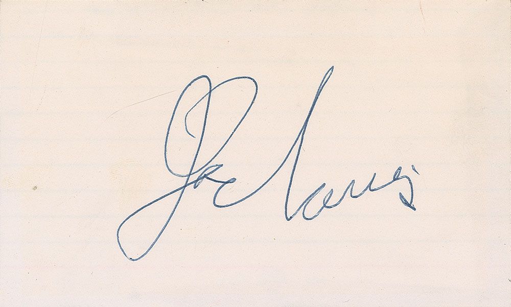 Ballpoint signature, “Joe Louis,” on an off-white 5 x 3 card. In fine condition.