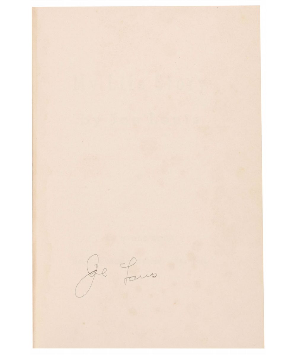 Signed book: My Life Story. First edition. NY: Duell, Sloan and Pearce, 1947. Hardcover with dust jacket, 6 x 8.5, 188 pages. Signed on the second free end page in fountain pen. Autographic condition: fine, with some scattered light toning. Book condition: VG-/G. Green cloth-covered boards; mild wear to edges; heavy foxing to exterior and first/last few pages; discoloration to endpapers (from publisher’s glue); small seller’s sticker to front pastedown; minor crack to front hinge. Dust jacket has large chips/tears and creases along edges and folds (missing upper 2.5? from spine); one additional chip to center of front panel; light soiling and rubbing; yellowing and foxing.
