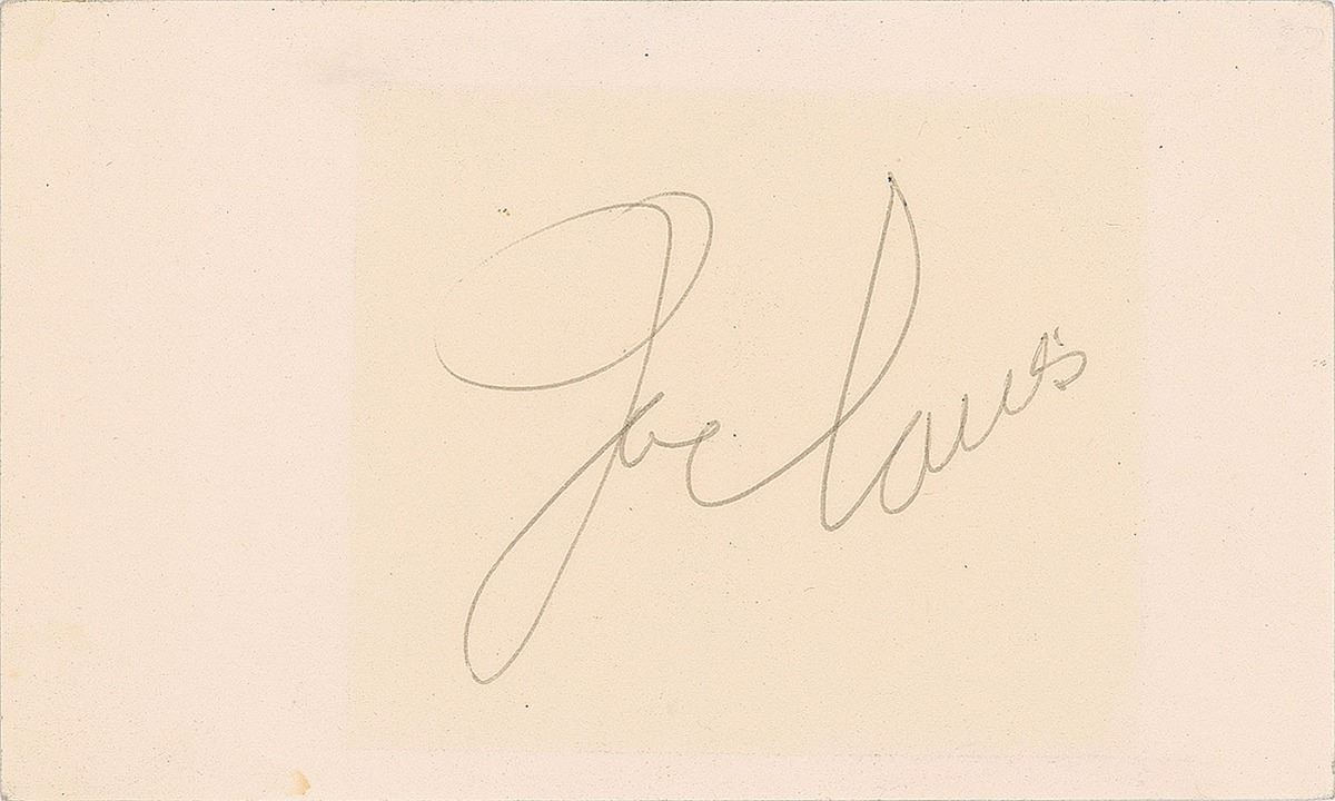 Vintage ballpoint signature, “Joe Louis,” on an off-white 5 x 3 card. In fine condition, with a light block of toning from prior display.