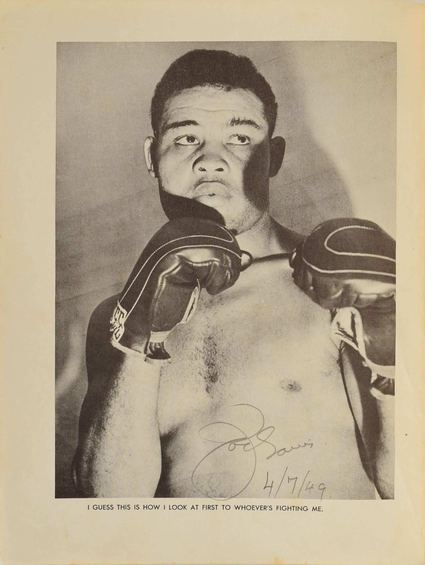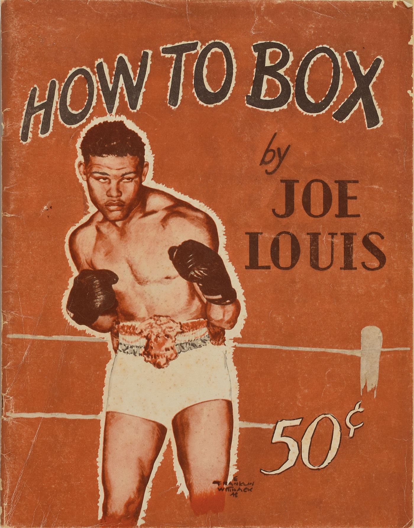 Signed booklet: How to Box. Philadelphia: David McKay Company, 1948. Softcover, 8 x 10.5, 64 pages. Signed on his image opposite the title page in fountain pen as the world heavyweight champ, "Joe Louis, 4/7/49." In very good to fine condition, with creasing and handling wear to the covers.