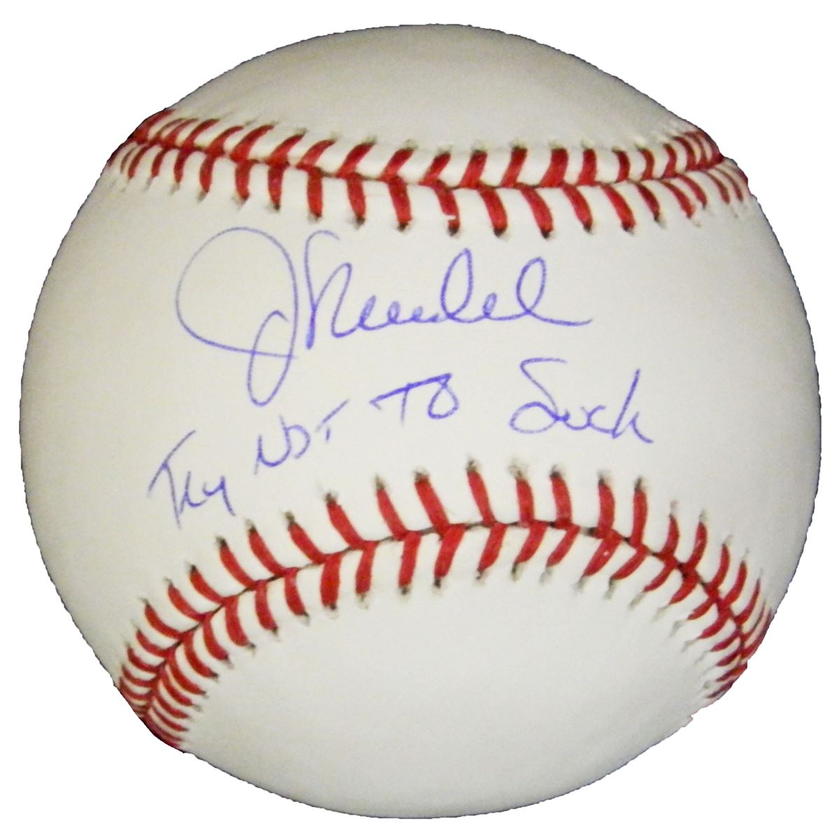 Joe Maddon signed Rawlings official MLB baseball with 'Try Not To Suck' inscription. Item comes with a Schwartz Sports Memorabilia tamper-proof numbered hologram and Certificate of Authenticity which can be verified online.