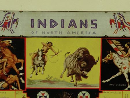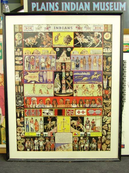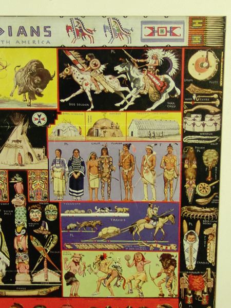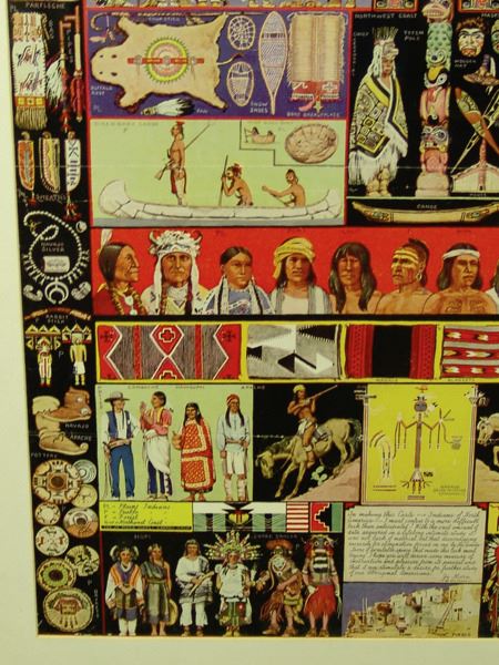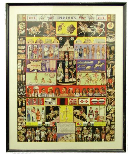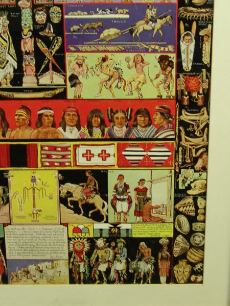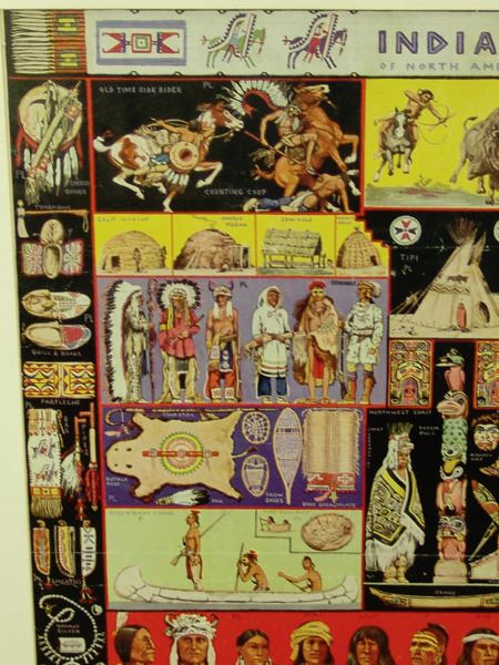 Ca. 1936, Rare 1936 full color poster - "Indians of North America" - depicting Indian crafts and styles as seen in 1930s USA. Good condition, crease visible, no tears. 36" x 28"