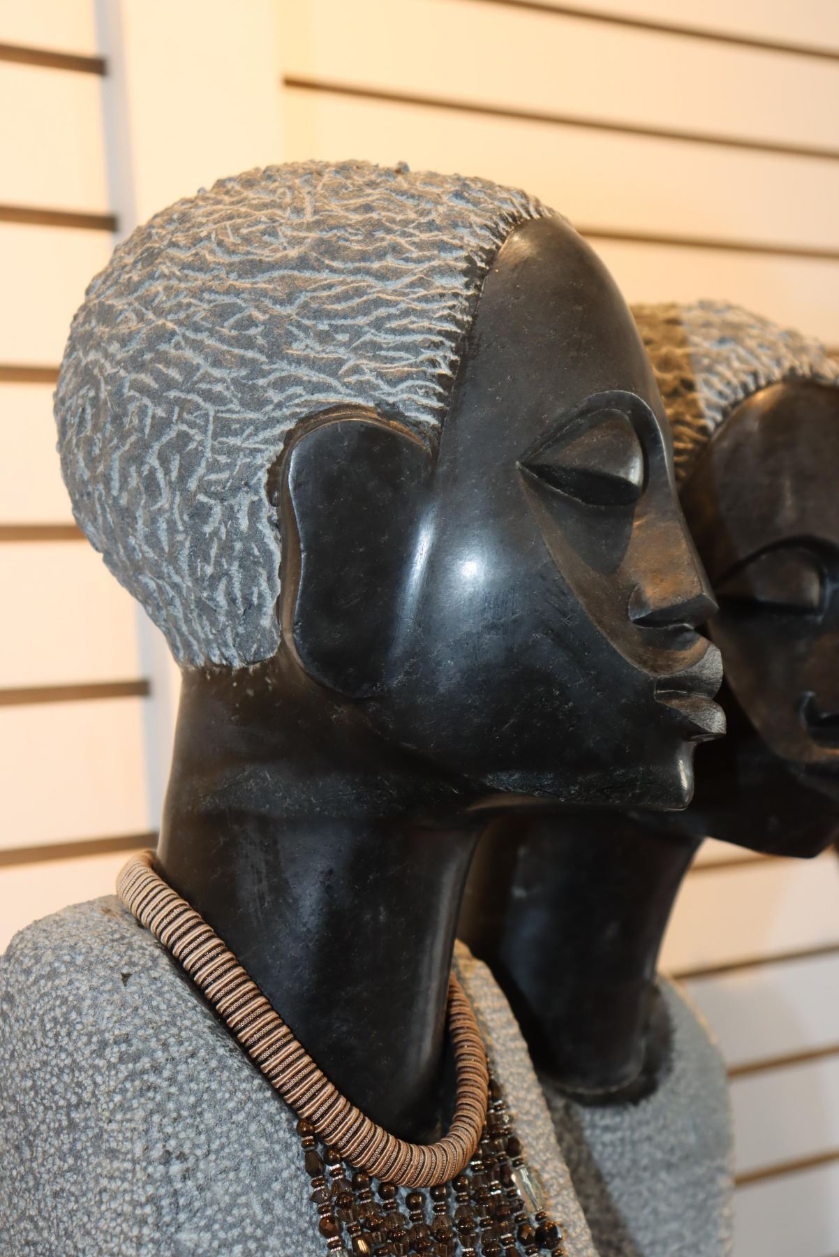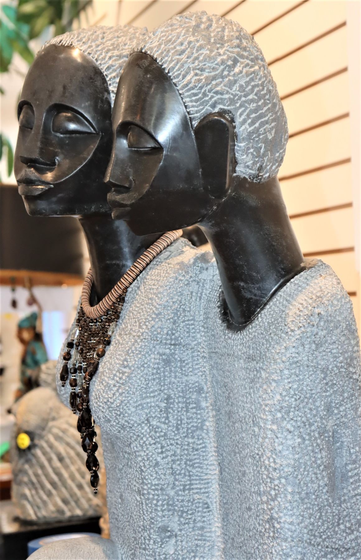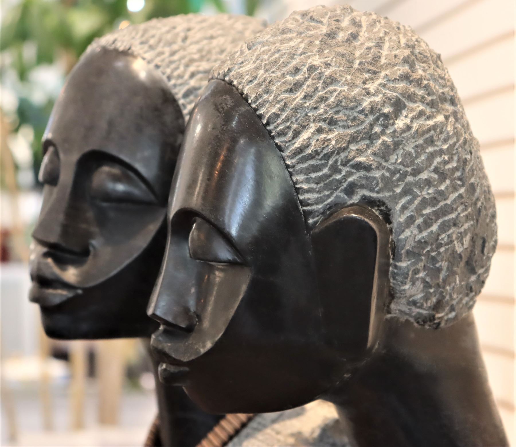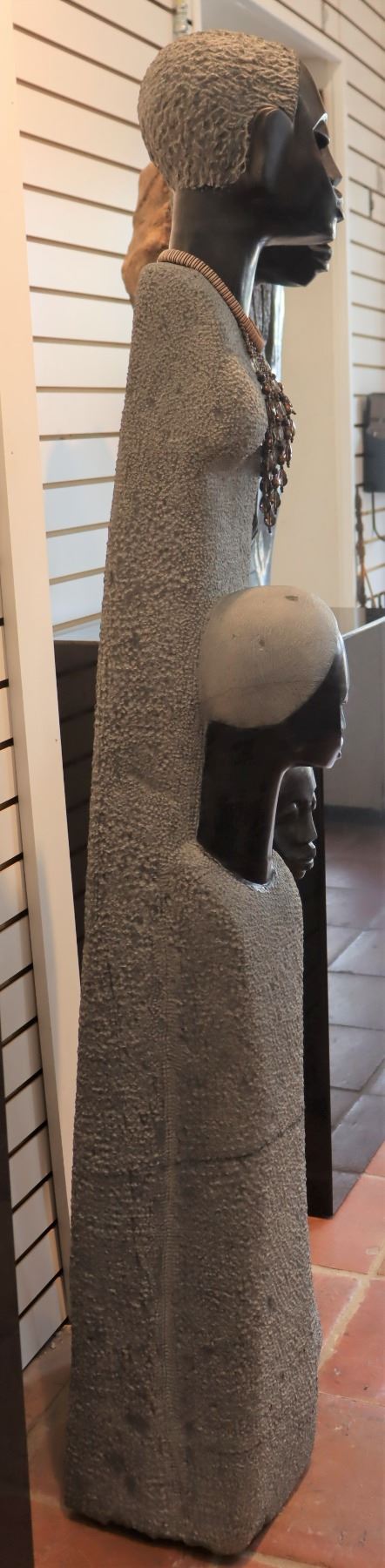 Majestic sculpture of a group of four family members, parents and children. Created from locally sourced Serpentine stone, signed at back of base: Joe Mutasa '99.Joe Mutasa is one of the most prominent names of the second generation of Zimbabwean sculptors. As a sculptor with over 30 years’ experience, he has travelled widely as a resident artist at a number of high-profile international exhibitions. His work has also been featured in innumerable local and international joint and solo exhibitions. His graceful sculptures with their fine proud features are instantly recognizable and much sought-after by collectors worldwide.