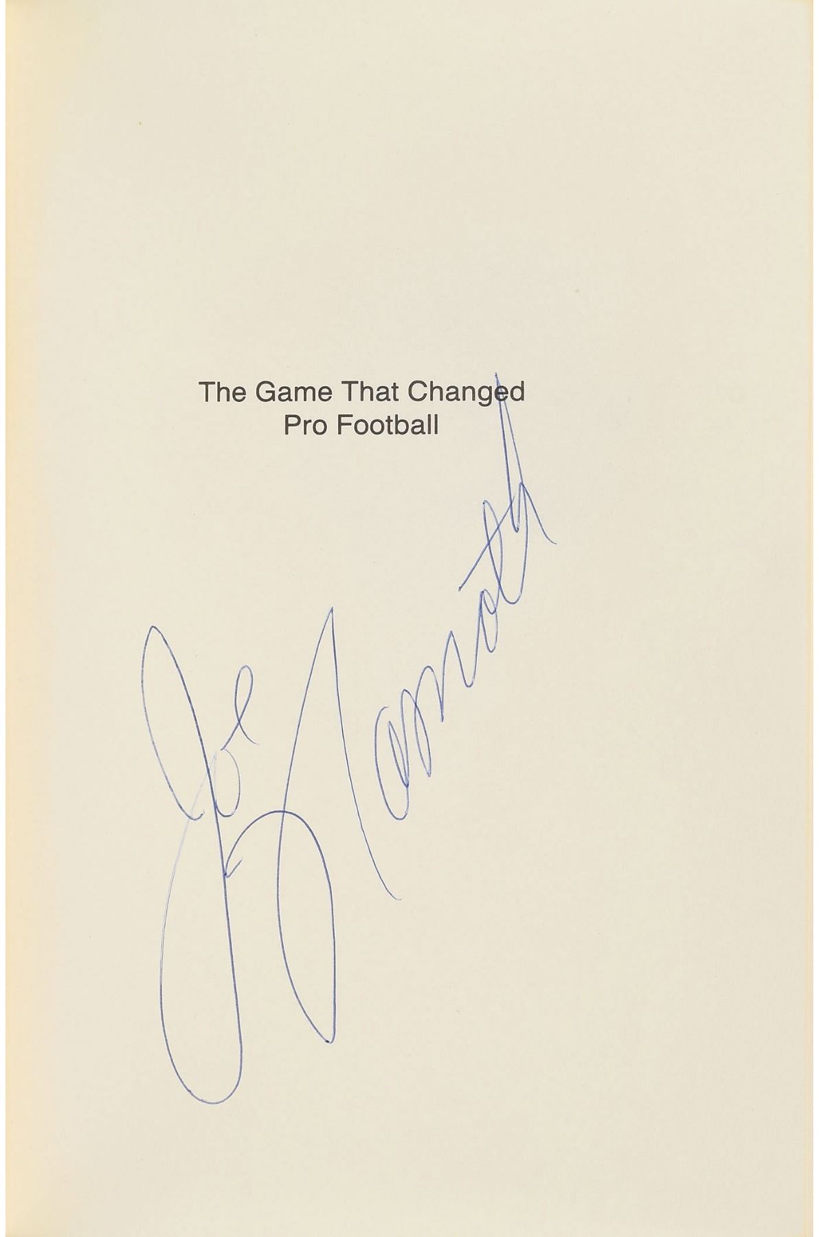 Signed book: The Game That Changed Pro Football. First edition. NY: Birch Lane Press, 1989. Hardcover with dust jacket, 6.5 x 9.25, 216 pages. Signed on the half-title page in blue ballpoint by Joe Namath. In fine condition.