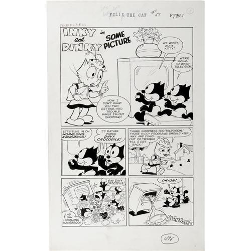 <B>Joe Oriolo - Felix the Cat #67, Complete 5-page Inky and Dinky Story "Some Picture" Original Art (Harvey, 1956)</B></I>. Inky and Dinky act like a couple of boobs in front of the TV tube in this fun-filled five-pager. The image area of each page measures 12" x 18". In Very Good condition. <BR><BR><b>Shipping:</b> Flat Material, Large (<a target="_blank" href="http://www.heritageauctions.com/common/shipping.php">view shipping information</a>)