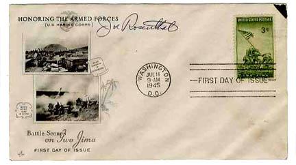 Iwo Jima Photographer Joe Rosenthal Signed First Day Cover -- ''Battle Scenes on Iwo Jima'' Cover Dated 11 June 1945 -- Excellent Condition