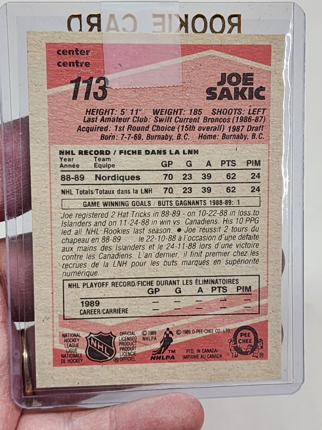 Joe Sakic OPEE CHEE RC #113