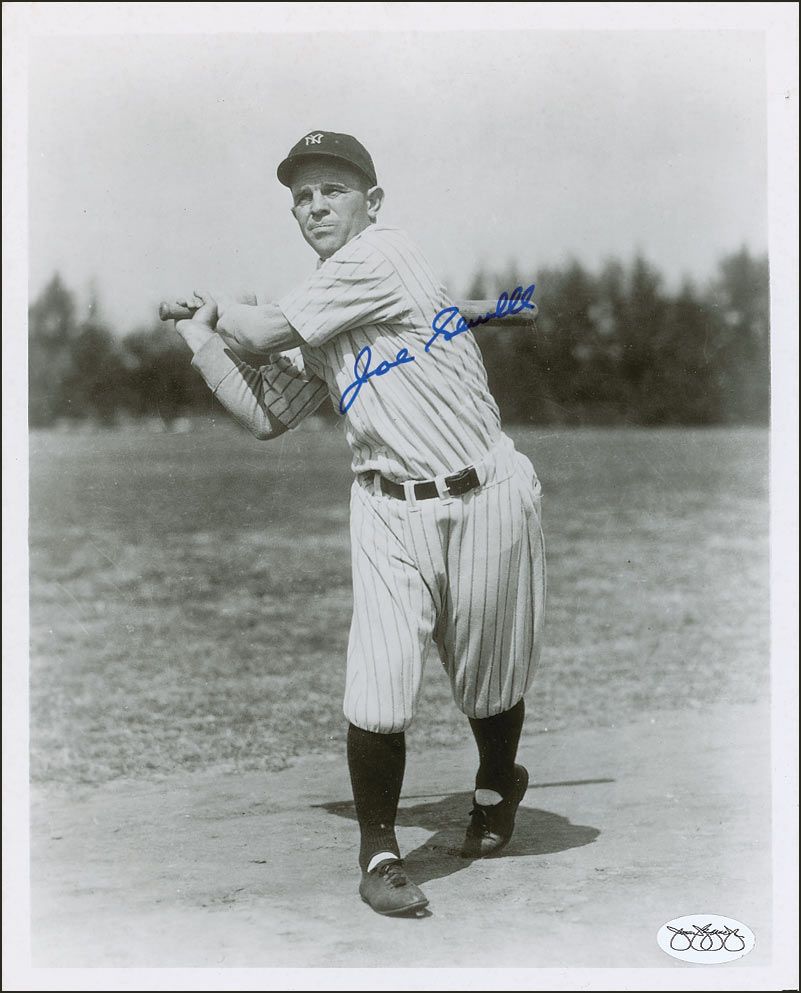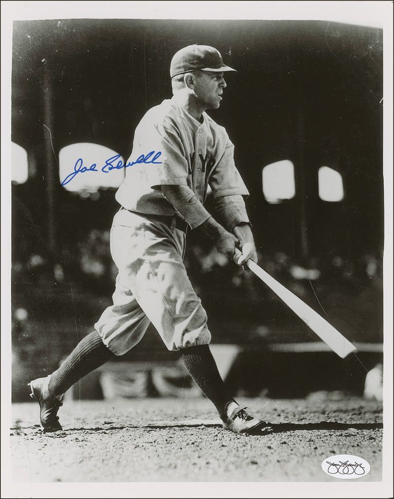 Two glossy 8 x 10 photos of Sewell in his Yankees uniform, each signed in blue felt tip. Scattered spotting to finish of one photo, and a James Spence authentication label affixed to lower corner of each photo, otherwise fine condition.