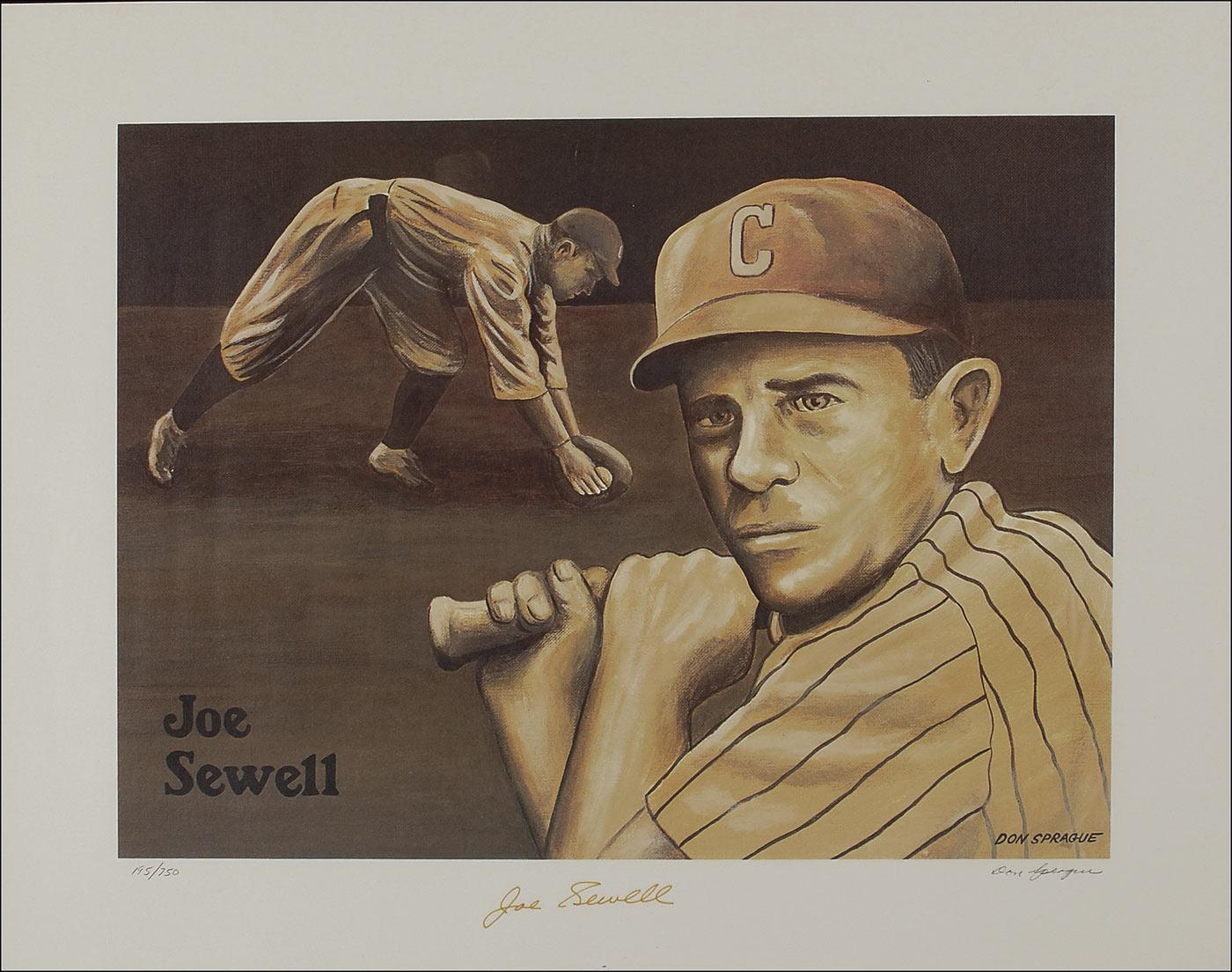 Baseball Hall of Famer who holds the record for the lowest strikeout rate in Major League history, striking out on average only once every 63 at-bats, and the most consecutive at-bats without a strikeout, at 115. Color limited edition 20 x 16 print, numbered #195/750, signed in brown felt tip. Also signed in pencil by the artist, Don Sprague. Rolled and in fine condition, with some light vertical bends and creases. Pre-certified Steve Grad/PSA/DNA and RRAuction COA.