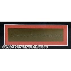 48B. Memorabilia - Auctioneer does not warrant authenticity of a memorabilia lot (Autographs, Sports Collectibles, or Music, Entertainment, Political, Americana and/or Pop Culture memorabilia), when the lot is accompanied by a Certificate of Authenticity, or its equivalent, from an independent third party authentication provider. Bidder shall solely rely upon warranties of the authentication provider issuing the Certificate or opinion. For information as to such authentication provider's warranties the bidder is directed to: SCD Authentic, 4034 West National Ave., Milwaukee, WI 53215 (800) 345-3168; JO Sports, Inc., P.O. Box 607 Brookhaven, NY 11719 (631) 286-0970; PSA/DNA; 130 Brookshire Lane, Orwigsburg, Pa. 17961; Mike Gutierrez Autographs, 8150 Raintree Drive Suite A, Scottsdale, AZ. 85260; or as otherwise noted on the Certificate.