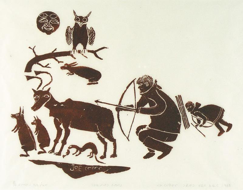 Canadian, Puvirnituq [b. 1893-1906, d. 1976] HUNTERS AND ANIMALS; 1965 stonecut on paper; ed. #4/30 13.5 x 17.5 in. (34.3 x 44.5 cm) signed, dated & editioned