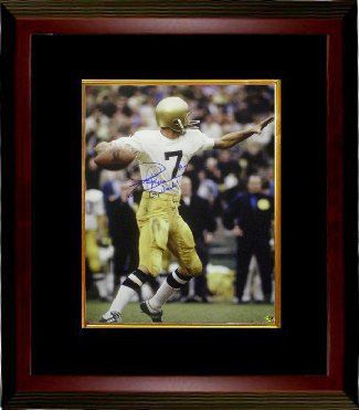 Joe Theismann attended and played college football for the University of Notre Dame. In 1969, Theismann led the Irish to a number five ranking and their first bowl appearance in 45 years. The next year, the Irish had a 10–1 record, a number two ranking, and won against Texas in the 1971 Cotton Bowl Classic, 24–11. That year, Theismann was an All-American and an Academic All-America, and was in contention for the Heisman Trophy. Theisman was inducted into the College Football Hall of Fame in 2003. Joe Theismann has hand autographed this Notre Dame Fighting Irish 16x20 Photo with Go Irish inscription. MAB hologram and Certificate of Authenticity from Athlon Sports. Custom Black Mat and Premium Mahogany Color Framed as shown.