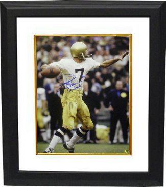 Joe Theismann attended and played college football for the University of Notre Dame. In 1969, Theismann led the Irish to a number five ranking and their first bowl appearance in 45 years. The next year, the Irish had a 10–1 record, a number two ranking, and won against Texas in the 1971 Cotton Bowl Classic, 24–11. That year, Theismann was an All-American and an Academic All-America, and was in contention for the Heisman Trophy. Theisman was inducted into the College Football Hall of Fame in 2003. Joe Theismann has hand autographed this Notre Dame Fighting Irish 16x20 Photo with Go Irish inscription. MAB hologram and Certificate of Authenticity from Athlon Sports. Custom White Mat and Premium Black Color Framed as shown.