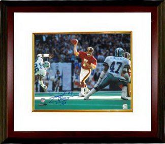 Joe Theismann led the Redskins to a win in Super Bowl XVII and an appearance in Super Bowl XVIII and would go on to set several Redskins franchise records, including most career passing attempts (3,602), most career passing completions (2,044) and most career passing yards (25,206), while also throwing 160 touchdown passes. He was the NFL's MVP in 1983. Joe Theismann has hand autographed this Washington Redskins 16x20 Photo with NFL MVP 1983 inscription. Leaf Hologram and Certificate of Authenticity from Athlon Sports. Custom White Mat and Premium Mahogany Color Framed as shown.