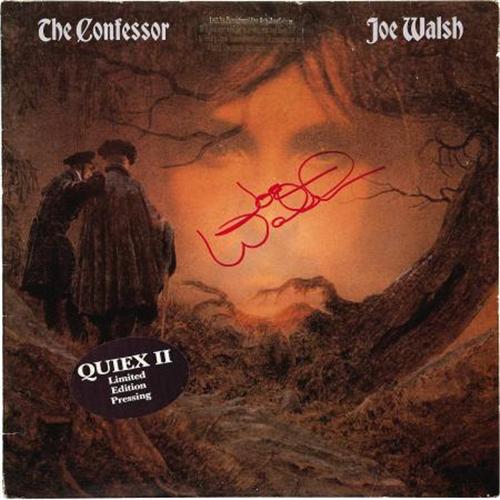 <B>Joe Walsh Signed</B></I> <B><I>The Confessor</B></I></B></I> <B>Promo Copy LP.</B></I> A Quiex II limited edition pressing with promo copy stamp of Walsh's 1985 solo album, signed on the front cover and also on the Side 1 label of the LP by him in red felt tip. The record is in Excellent condition, the cover is Very Fine to Excellent with mild edge and corner wear. <I>Accompanied by a COA from PSA/DNA.</B></I> <I>From the Joe Walsh Collection.</B></I><BR><BR><b>Shipping:</b> Recordings (<a target="_blank" href="http://www.heritageauctions.com/common/shipping.php">view shipping information</a>)