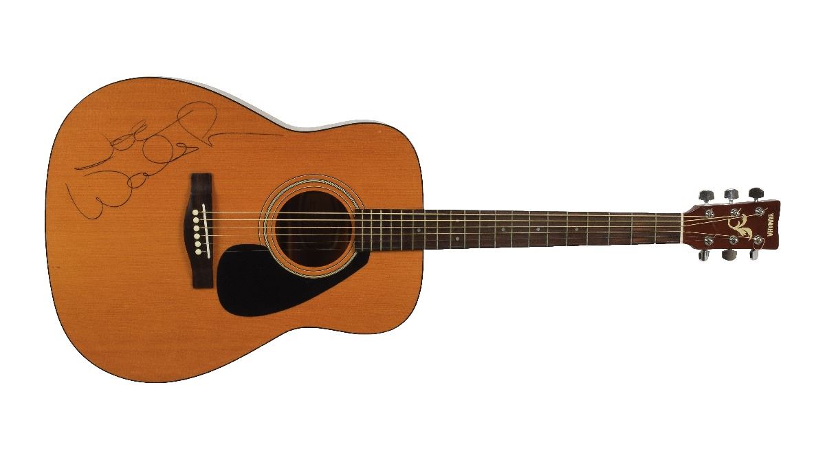 Natural-finish Yamaha FG-402 right-handed acoustic guitar, nicely signed on the body in black felt tip by Walsh. Includes a ChromaCast gig bag. In fine condition. Accompanied by a full letter of authenticity from JSA.