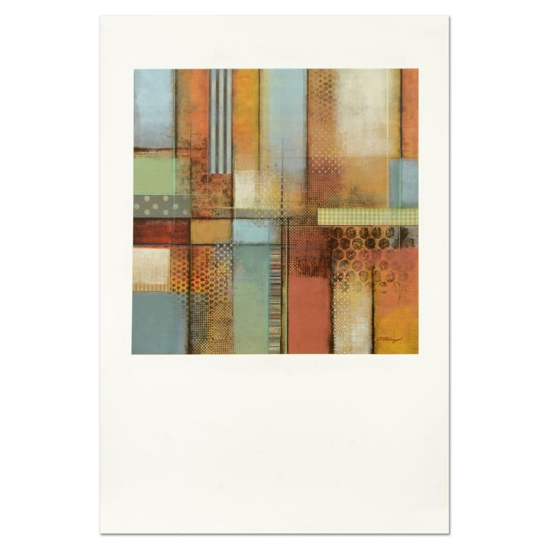 "Syncratic Medley II" is an original mixed media painting on paper by Joel David Holsinger, hand signed by the artist. Includes Letter of Authenticity. Measures approx. 30" x 44" (border), 24" x 24" (image).