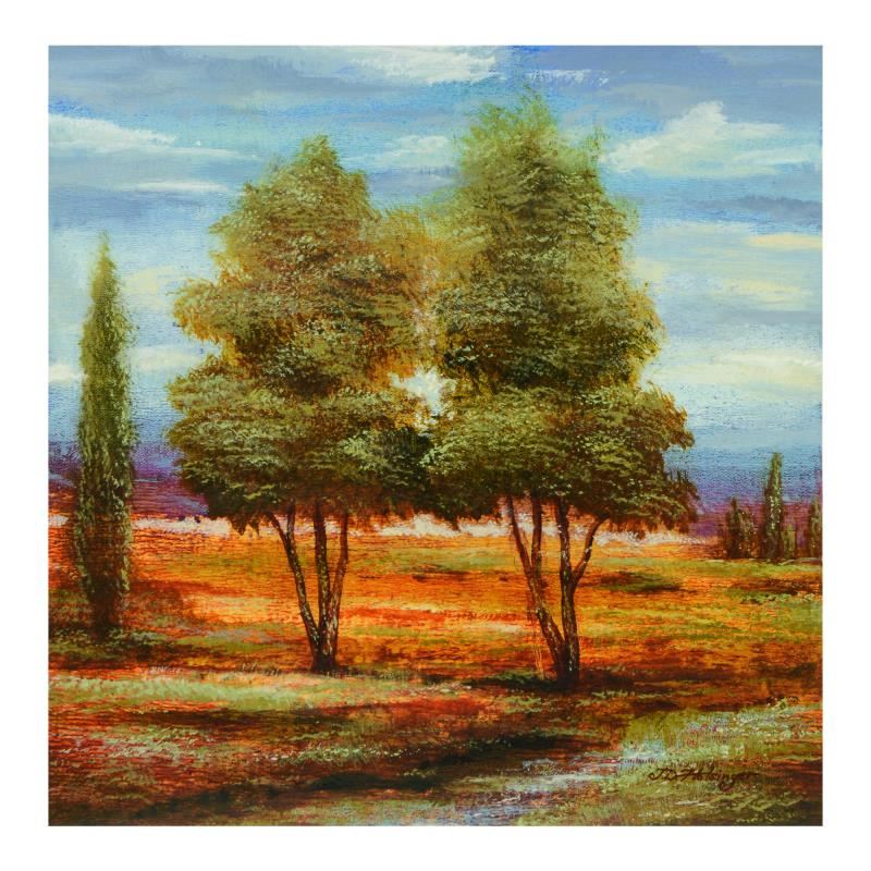 "Woodland Acres II" is an original oil painting on canvas by Bruce Braithwaite, hand signed by the artist. Includes Letter of Authenticity. Measures approx. 12" x 12" (image).