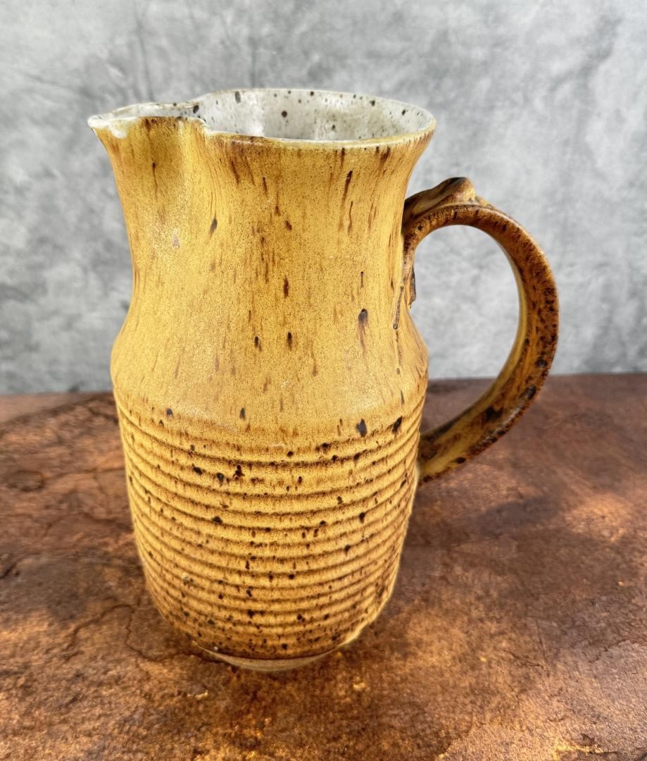 10 3/4" tall, 5 5/8" in diameter, 8" long at handle.