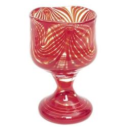 Joel Philip Myers studio glass goblet, 1970, red and clear glass form hand-blown by Myers, full engraved signature and date to base, 6”h, mint conditio