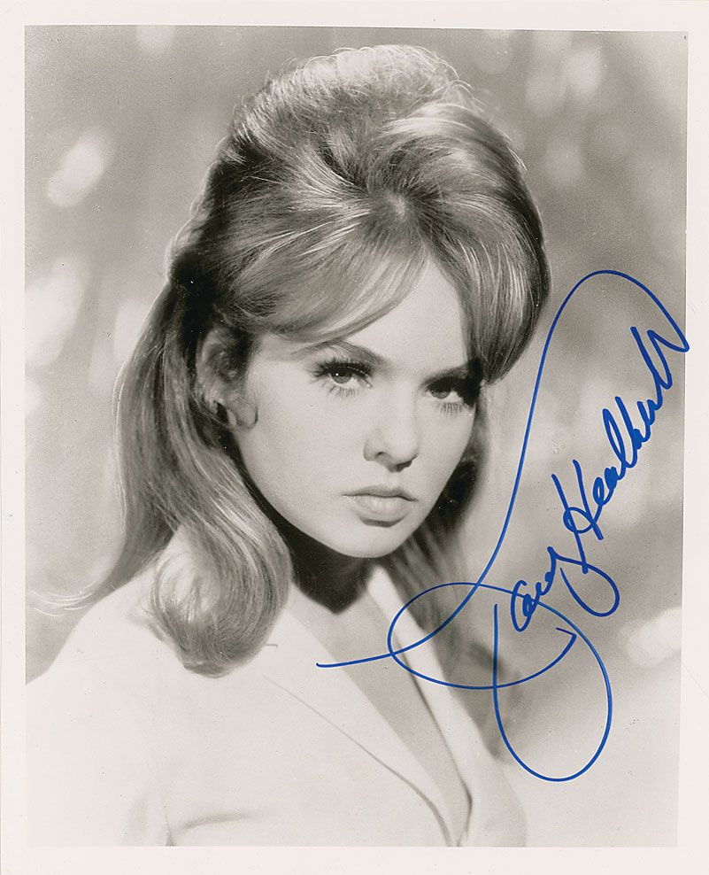 Glossy 8 x 10 photo of Heatherton pouting for the camera, signed in blue felt tip. In fine condition, with some scattered light creases and surface dings.