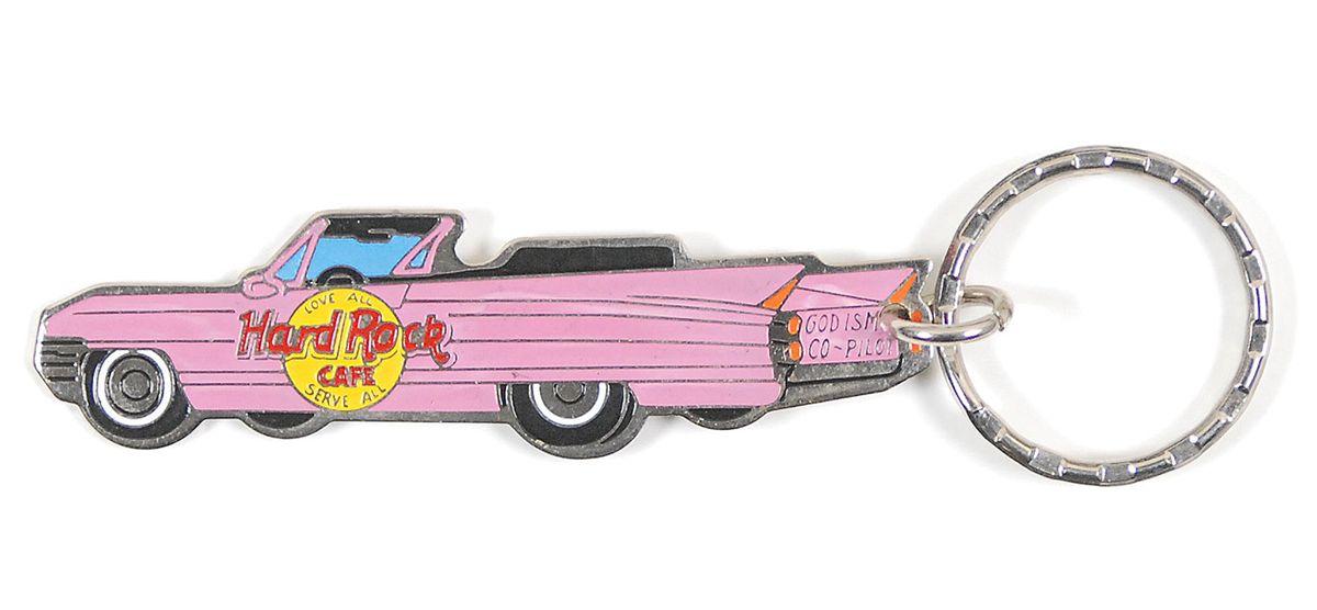 Joey Ramone’s personally-owned Hard Rock Cafe key chain. Key chain measures approximately 4? long and features a pink Cadillac convertible with the Hard Rock Cafe logo on the front door. In fine condition. Accompanied by a letter of authenticity from the Joey Ramone Estate.