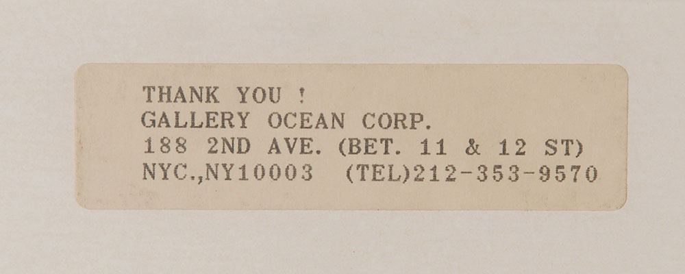 For Bidders who do not remove purchased property from RR Auction’s premises, RR Auction, in its sole discretion and solely as a service and accommodation to Bidders, may arrange to have purchased lots packed, insured and forwarded at the sole request, expense, and risk of Bidder. RR Auction assumes no and disclaims all responsibility and liability for acts or omissions in such packing or shipping by RR Auction or other packers and carriers, whether or not recommended by RR Auction. RR Auction assumes no and disclaims all responsibility and liability for damage to frames, glass or other breakable items. Where RR Auction arranges and bills for such services via invoice, RR Auction will include an administration charge.