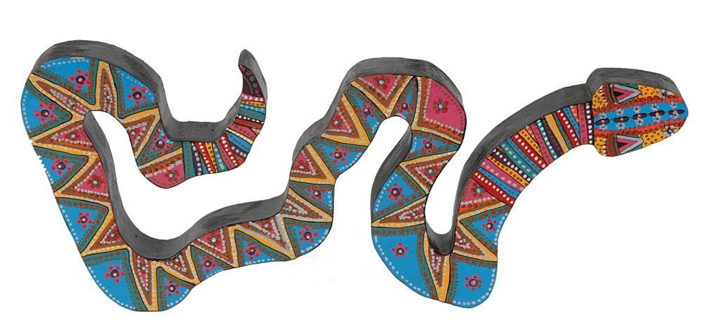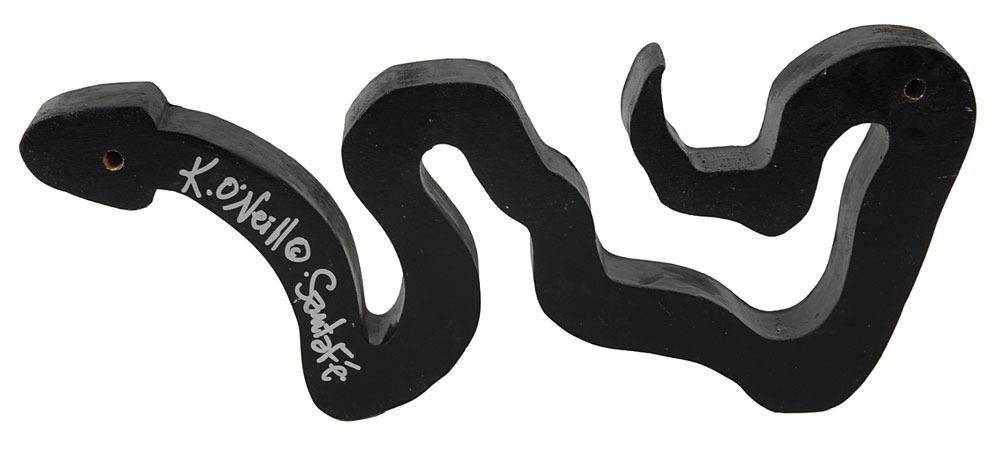 Joey Ramone’s personally-owned wooden hand-painted snake artwork, 10.75 x 5 x 1.25, depicting a vibrantly colored snake with various flower and geometric patterns. Reverse is signed in silver ink by the artist, “K. O’Neill, Sante Fe.” In fine condition. Accompanied by a letter of authenticity from the Joey Ramone Estate.