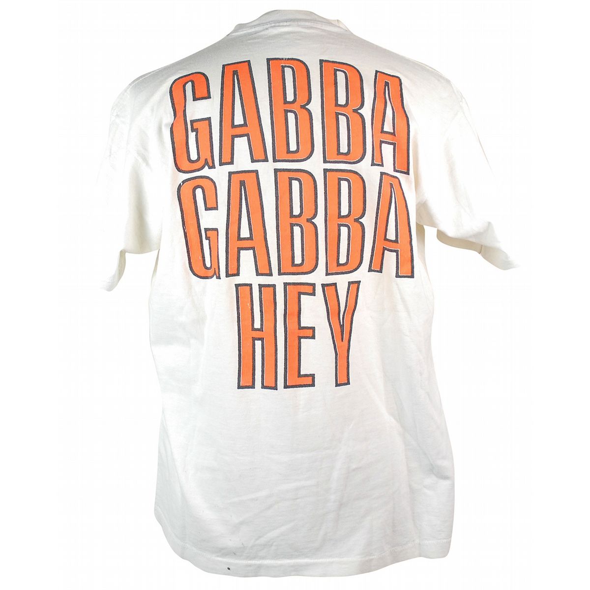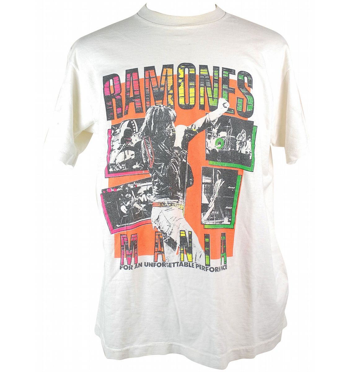 Joey Ramone’s personally-owned T-shirt. White T-shirt, size XL by Fruit of the Loom, features the band’s neon Ramones Mania logo on the front and “Gabba Gabba Hey” on the reverse. In fine condition. Accompanied by a letter of authenticity from the Joey Ramone Estate.