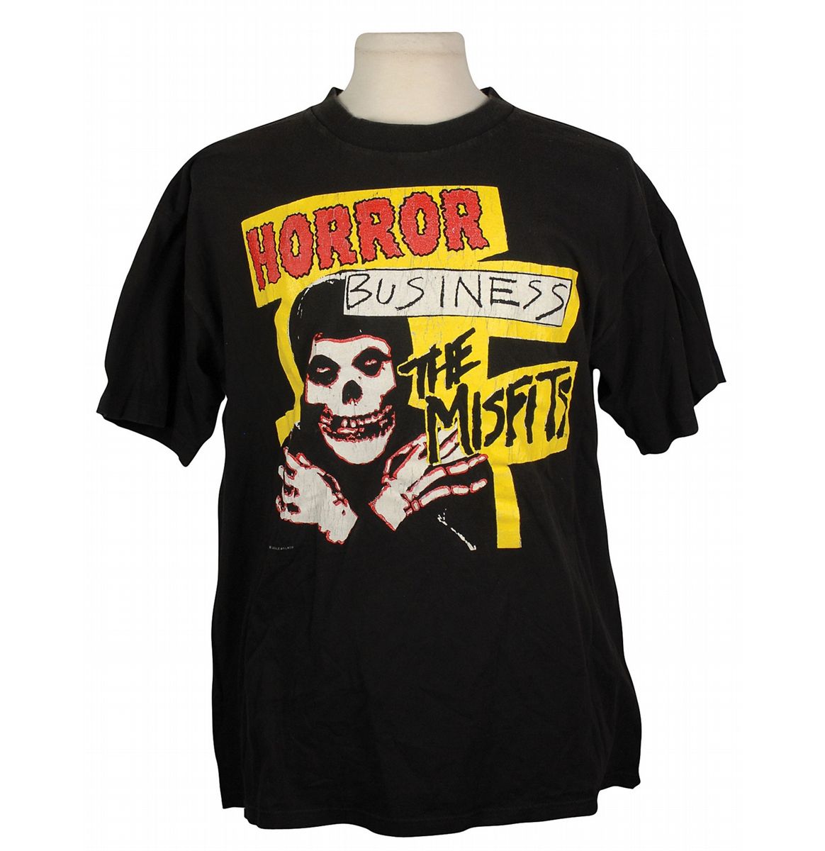 Joey Ramone’s stage-worn t-shirt. Black t-shirt, size XL by Wild Oats, is for the band The Misfits and bears the band’s name and ‘Crimson Ghost’ logo, as well as one of their single names “Horror Business.” In fine condition, with expected wear. Accompanied by a photo of Joey wearing the shirt on stage signing back-up for an unidentified band. Provenance: Joey Ramone Estate. Accompanied by a letter of authenticity from the Joey Ramone Estate.