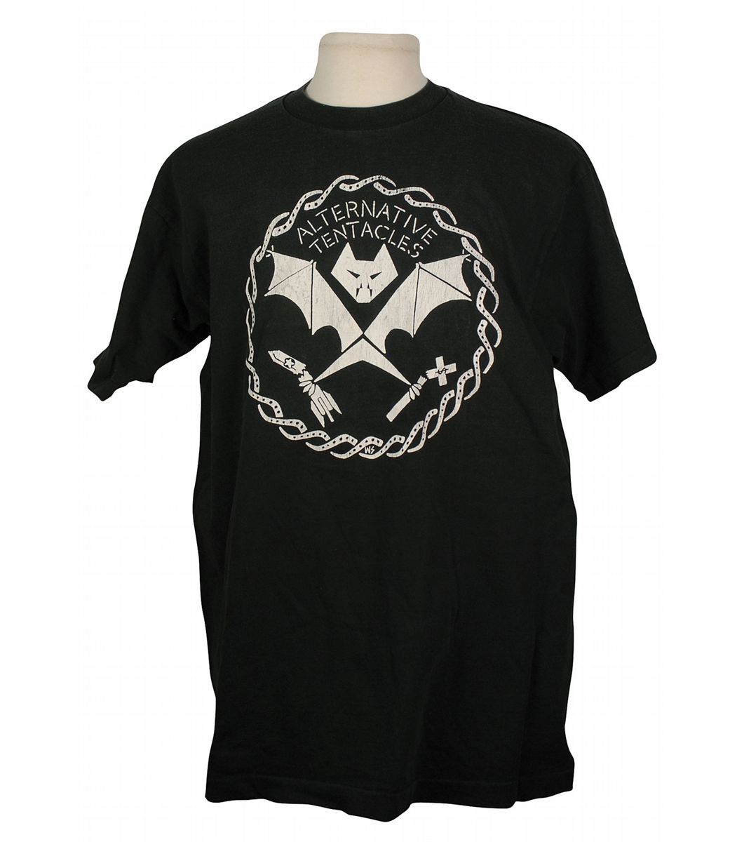 Joey Ramone’s stage-worn t-shirt. Black t-shirt, size XL by Fruit of the Loom, is for the band Alternative Tentacles and bears the band’s logo. In fine condition, with expected wear. Accompanied by a photo of Joey wearing the shirt on stage. Provenance: Joey Ramone Estate. Accompanied by a letter of authenticity from the Joey Ramone Estate.