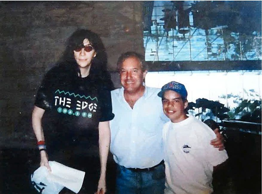 Joey Ramone’s personally owned and-worn t-shirt. Black t-shirt, size XL by Hanes, promotes the radio station 106.3 The Edge. In fine condition. Accompanied by a photo of Joey wearing the shirt and posing with fans. Provenance: Joey Ramone Estate. Accompanied by a letter of authenticity from the Joey Ramone Estate.