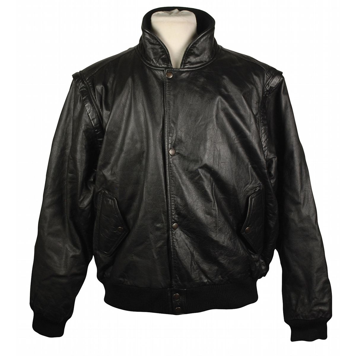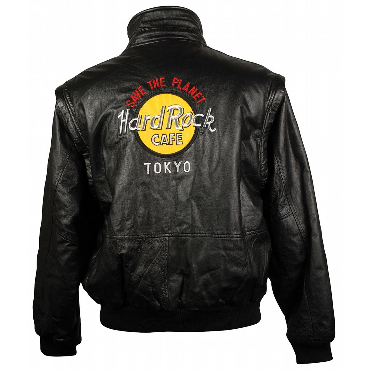 Joey Ramone’s personally owned leather Tokyo Hard Rock Cafe jacket. Black leather jacket, size XL, and is embroidered on the reverse with the Hard Rock Cafe logo, and features a snap-up front and removable sleeves. In fine condition. Provenance: Joey Ramone Estate. Accompanied by a letter of authenticity from the Joey Ramone Estate.