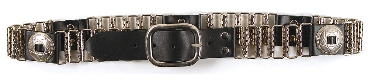 Joey Ramone’s personally owned and worn leather and metal belt. Black leather and metal loop belt measures approximately 42? long (including buckle), and is stamped on the reverse, “Genuine leather, Size L.” In fine condition. Provenance: Joey Ramone Estate. Accompanied by a letter of authenticity from the Joey Ramone Estate.