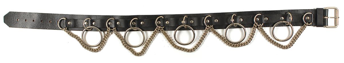 Joey Ramone’s personally owned and worn belt. Custom-made black leather belt measures 39? long (including buckle), with a smaller leather strap riveted to the outside, adorned with five 2.5? diameter rings and an attached chain. In fine condition. Provenance: Joey Ramone Estate. Accompanied by a letter of authenticity from the Joey Ramone Estate.