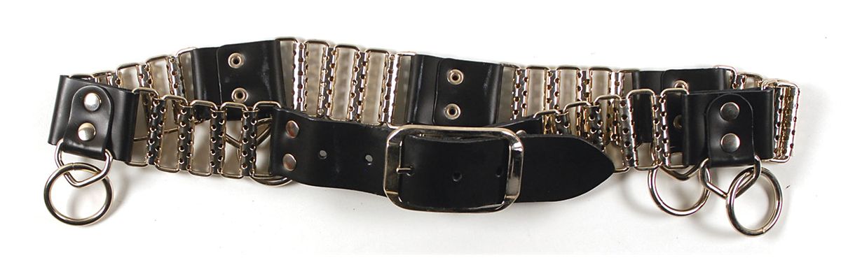 Joey Ramone’s personally owned belt. Black leather and metal link belt measures 39? long (including buckle), is a size medium, with five leather sections each bearing a dangling ring. In fine condition. Provenance: Joey Ramone Estate. Accompanied by a letter of authenticity from the Joey Ramone Estate.