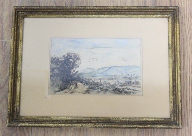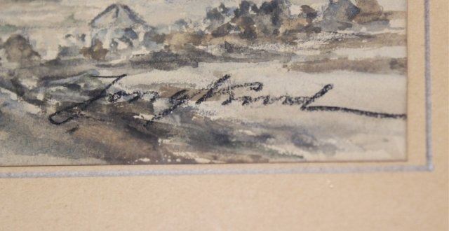 Watercolor and pencil. Signed lower right. Johan-Barthold Jongkind (1819-1891). Approx. 5 1/4" H x 8 1/4" W sight, 11" H x 15" W framed. (592)